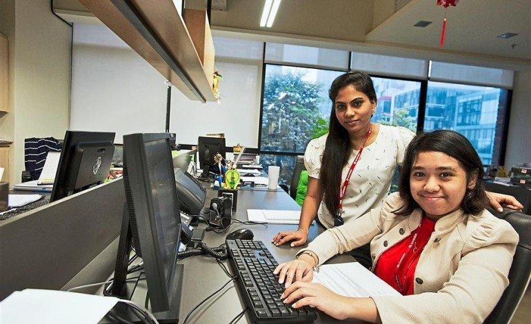 Thanks to Gamuda’s Project Differently-Abled, people with autism are given opportunities for gainful and sustainable employment. Qistina (right) and her buddy Kala at work.