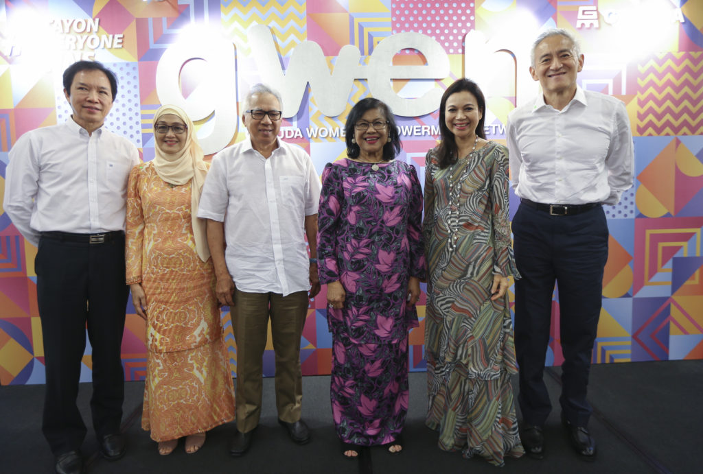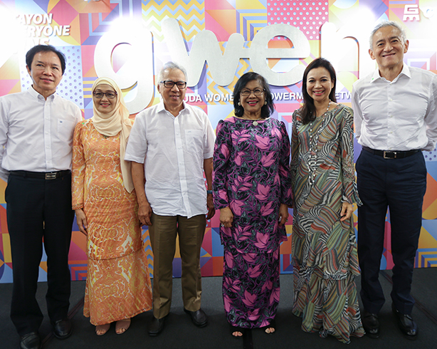 From left to right (L to R): Gamuda Deputy Group Managing Director Dato’ Ir Paul Ha, Gamuda Independent Non-Executive Director Nazli Mohd Khir Johari, Gamuda Independent Non-Executive Chairman Dato’ Mohammed Hussein, Chairman of Air Asia X Berhad and Former Minister of International Trade & Industry Tan Sri Rafidah Aziz, GWEN Patron and Gamuda Non-Independent Non-Executive Director YTM Raja Eleena and Gamuda Group Managing Director Dato’ Lin Yun Ling.