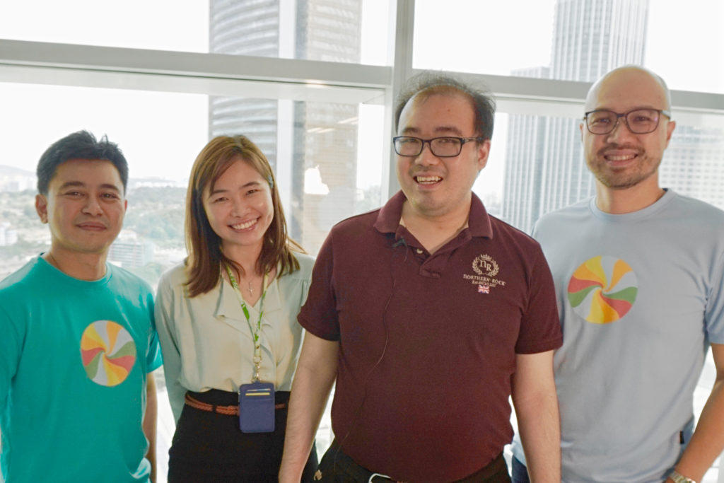 Enabling Academy graduate and Junior Test Engineer, Jonathan Soo (second from right) with his Enabling Academy Job Coach, Catherine Chin (second from left) and SalesCandy CEO and Co-founder, Stanley Chee (first from right) and Chief Technology Officer, Reza Rosli (first from left).