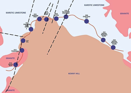 The geological conditions for the MRT Putrajaya Line underground works were much more challenging as six ‘fault lines’ were identified along the underground alignment.
