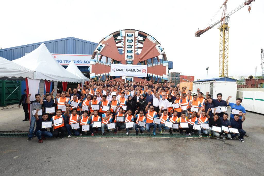 The training modules take up to 16 weeks covering specialised training, TBM operation, tunnel electrical application, ring building, cutting disc changing, and bi-component grouting. It equips the graduates for positions ranging from assistant TBM operator, erector operator, tunnel mechanic and electrician as well as tunnel crew. In line with Gamuda’s objective to upskill Malaysians, we have also promoted a significant number of TTA graduates by providing them with career growth opportunities.