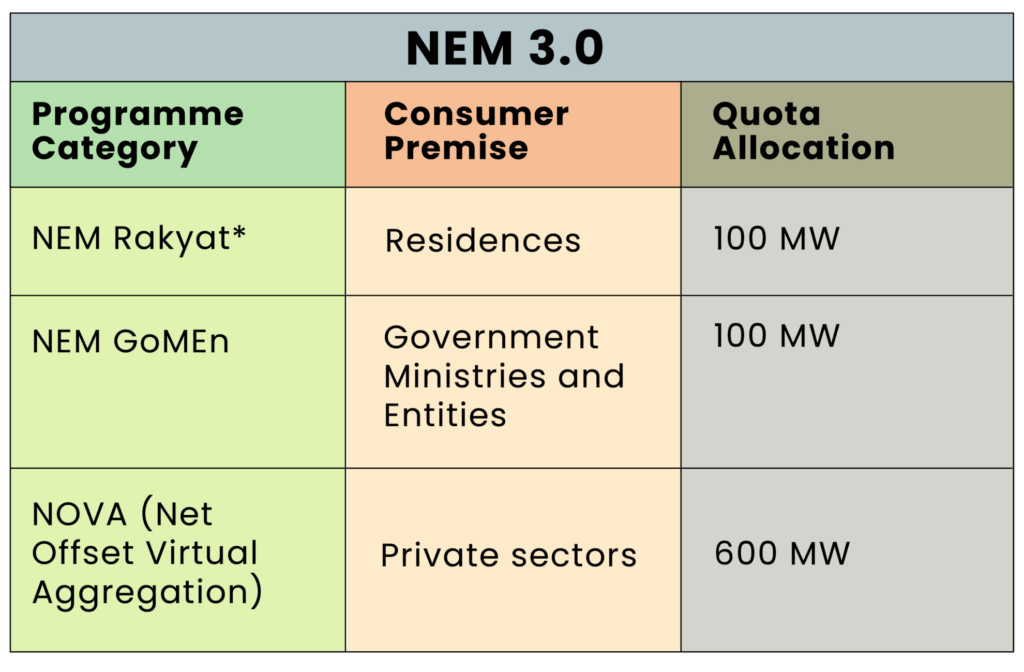*For those interested in installing or retrofitting solar PV on their rooftop, check out NEM Rakyat that is designed for domestic consumers to install solar PV systems in their homes or residences. Any excess energy produced through the solar PV systems will be exported to the electricity grid through a “one-on-one” offset basis for a term of ten years. Visit the SEDA website at https://www.seda.gov.my/reportal/nem/ for more information.