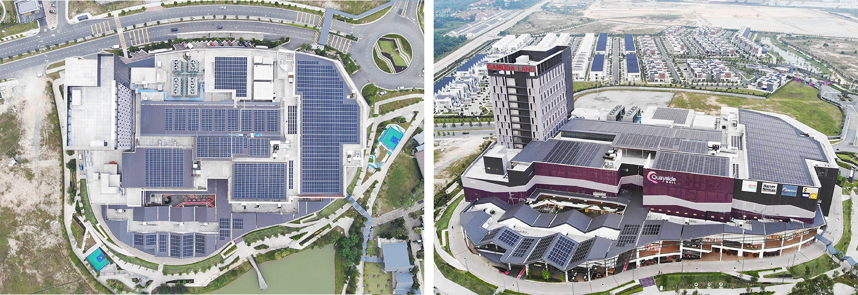 Gamuda has installed a total of 2,208 solar photovoltaic (PV) panels on the rooftop of the Quayside Mall in Kota Kemuning, which is our largest feat to-date. The massive array covering 5,706sqm, or more than 53% of the available roof area, has a total generation capacity of 1,192 kilowatts peak (kWp) or 1,536,900 kilowatts hour (kWh) per year. This will provide an anticipated energy savings of RM560,969 annually, which is an offset of about 15% of the current electricity consumption for the mall.