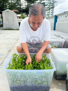 “We have 33 residents at our home, and many of them help us to grow the greens. They like to tend to the vegetables as it keeps them busy and active,” said Yap.