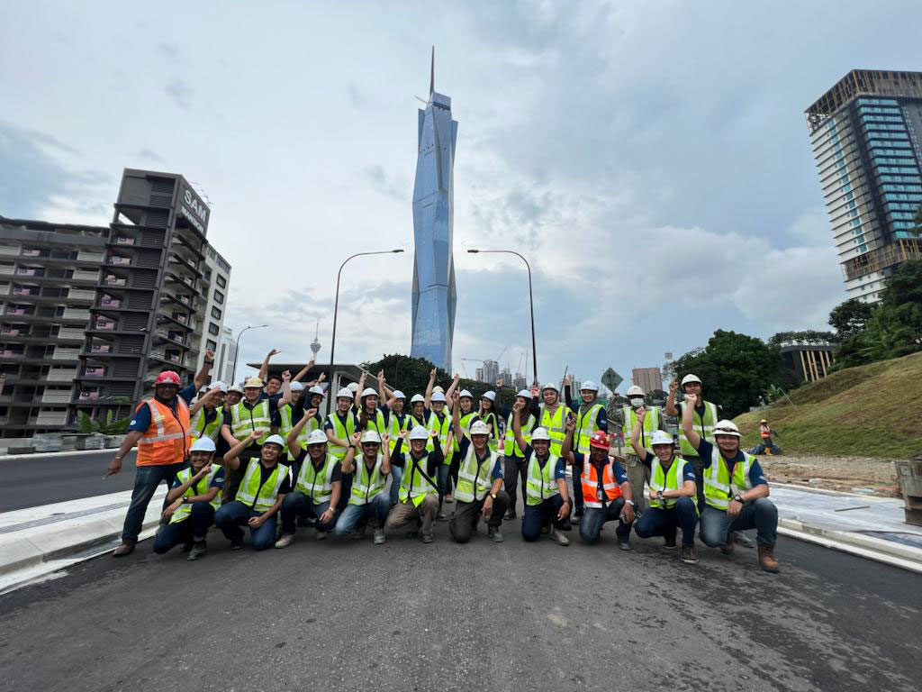 Wong Chee Keong (bottom, sixth from left), the project manager of the Merdeka 118 Infrastructure Package 05, together with his team, made sure the project adhered to environmental measures despite some constraints.