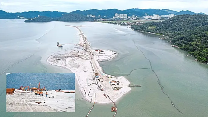 The land designated for the Mutiara Line Light Rail Transit (LRT) Depot on Silicon Island is steadily emerging above water, with the reclamation now approaching the 28ha mark.